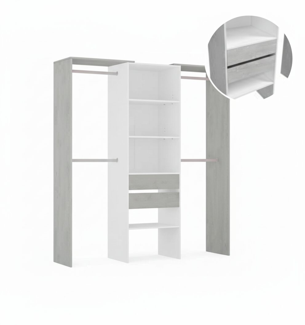 •  Modularidad y Versatilidad: Este modelo está diseñado para ser un vestidor abierto que puedes adaptar a tus necesidades de organización.